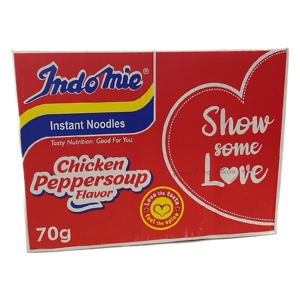 Indomie Noodles Peppersoup Box – the iconic Nigerian peppersoup flavoured instant noodles in a full trade box. Spicy, satisfying and ready in minutes.